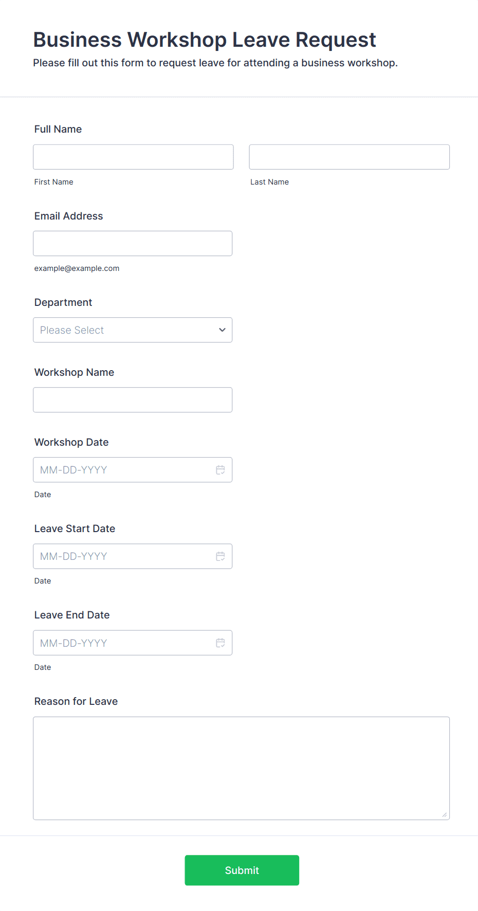 3. Parental or Family Leave: Collects detailed information for extended absences, such as maternity, paternity, or family care.