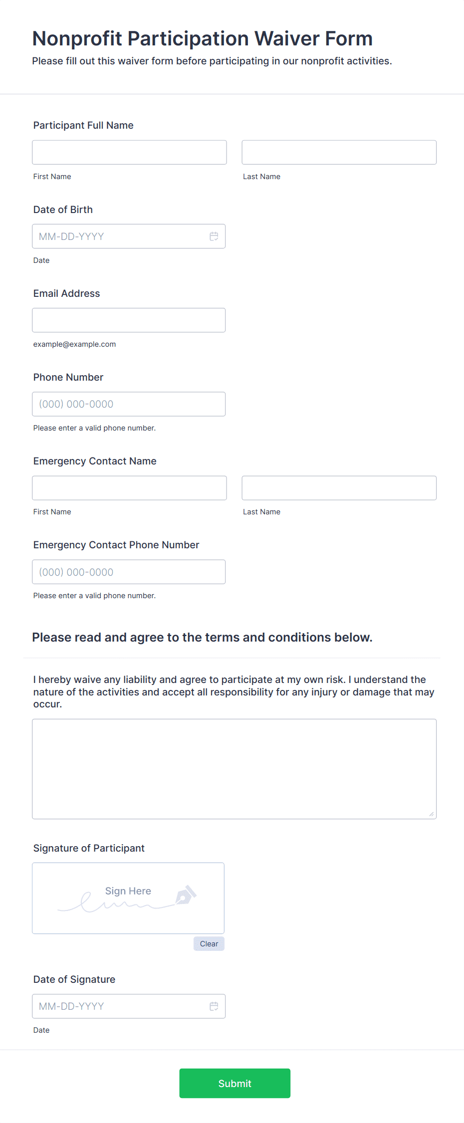 - Medical consent forms may require detailed information about procedures, risks, and emergency contacts.