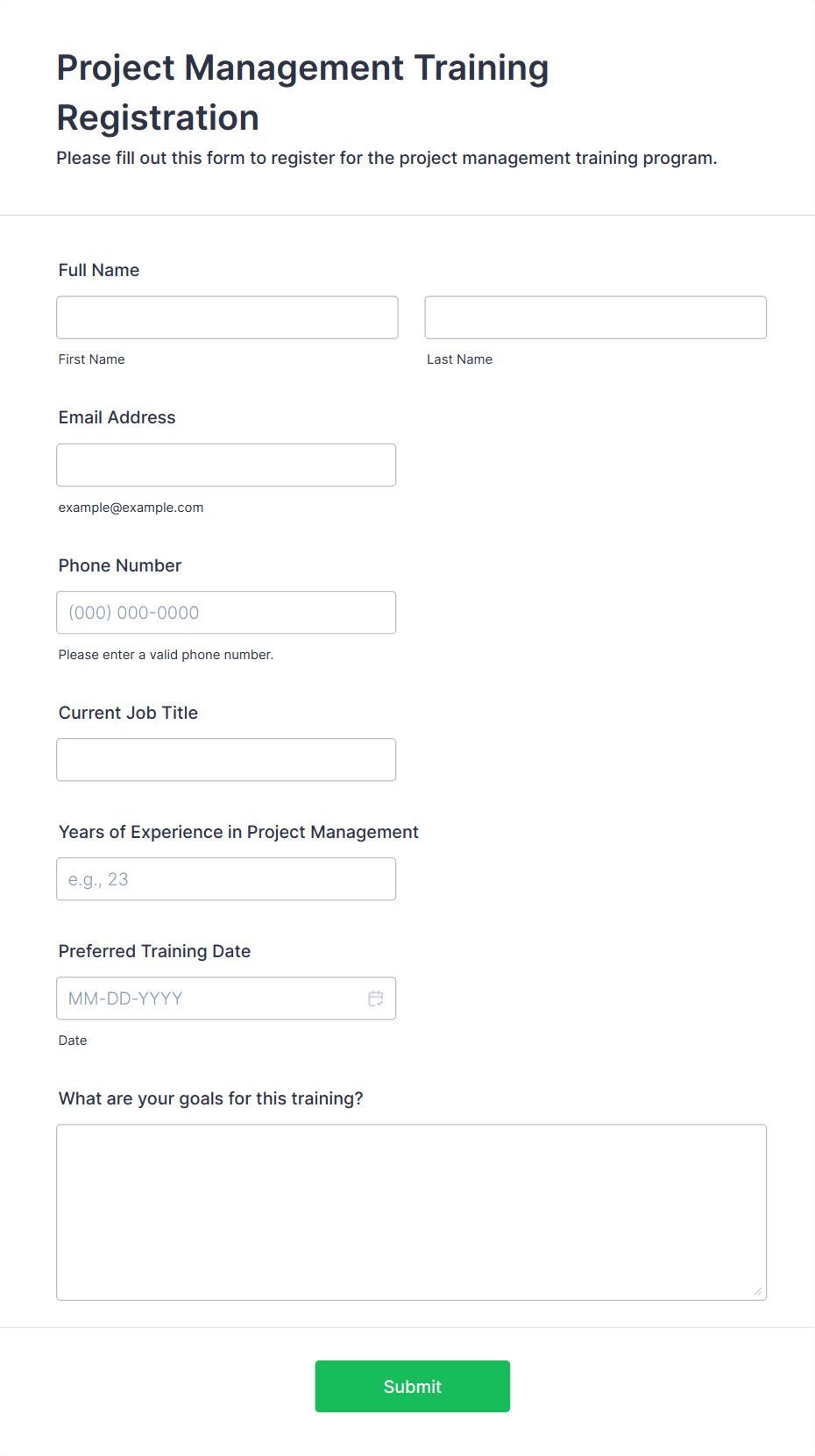 • Workshops and training sessions: Register participants, gather skill levels, and manage waitlists.