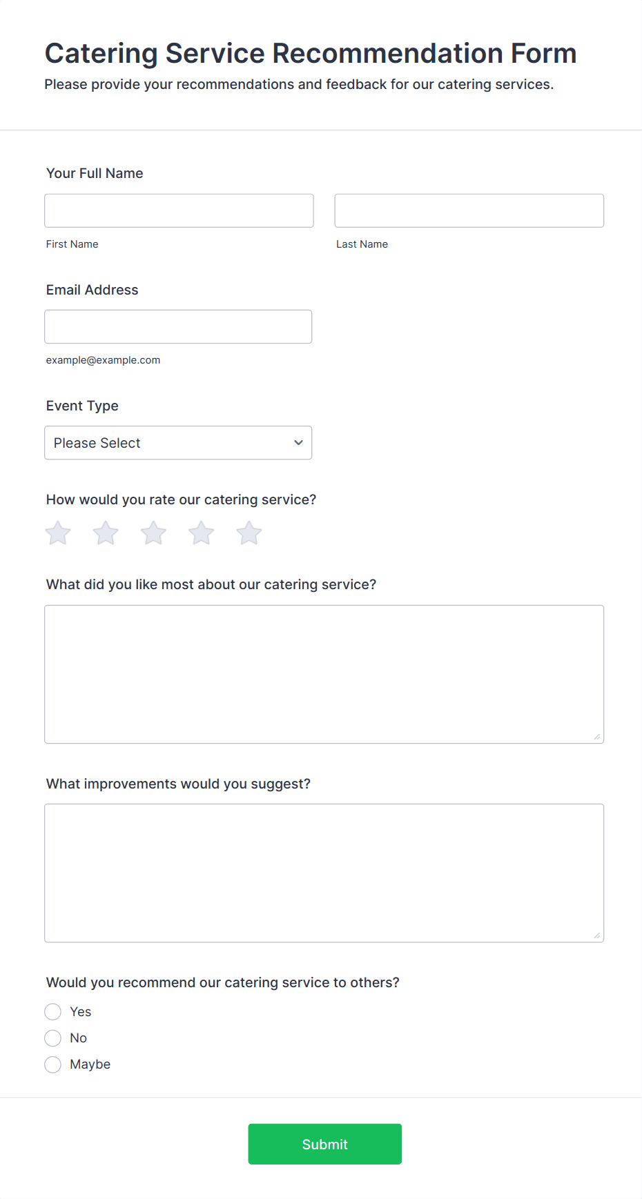 Catering Service Recommendation Form