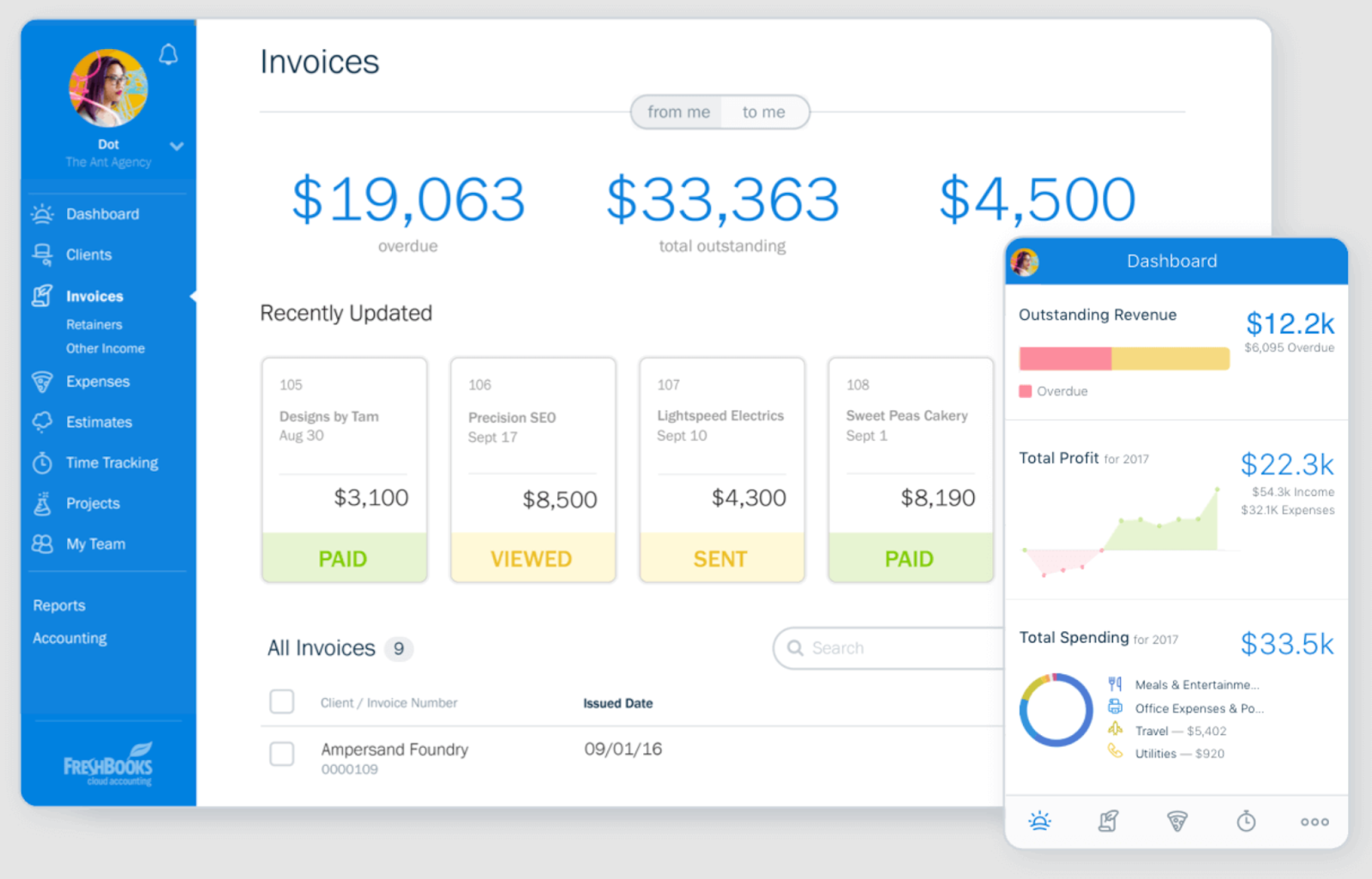 FreshBooks est un excellent logiciel de comptabilité, en particulier pour les travailleurs indépendants et les petites entreprises. FreshBooks propose une application mobile qui vous permet de communiquer avec vos clients sur les questions de facturation et de paiement lorsque vous êtes en déplacement.