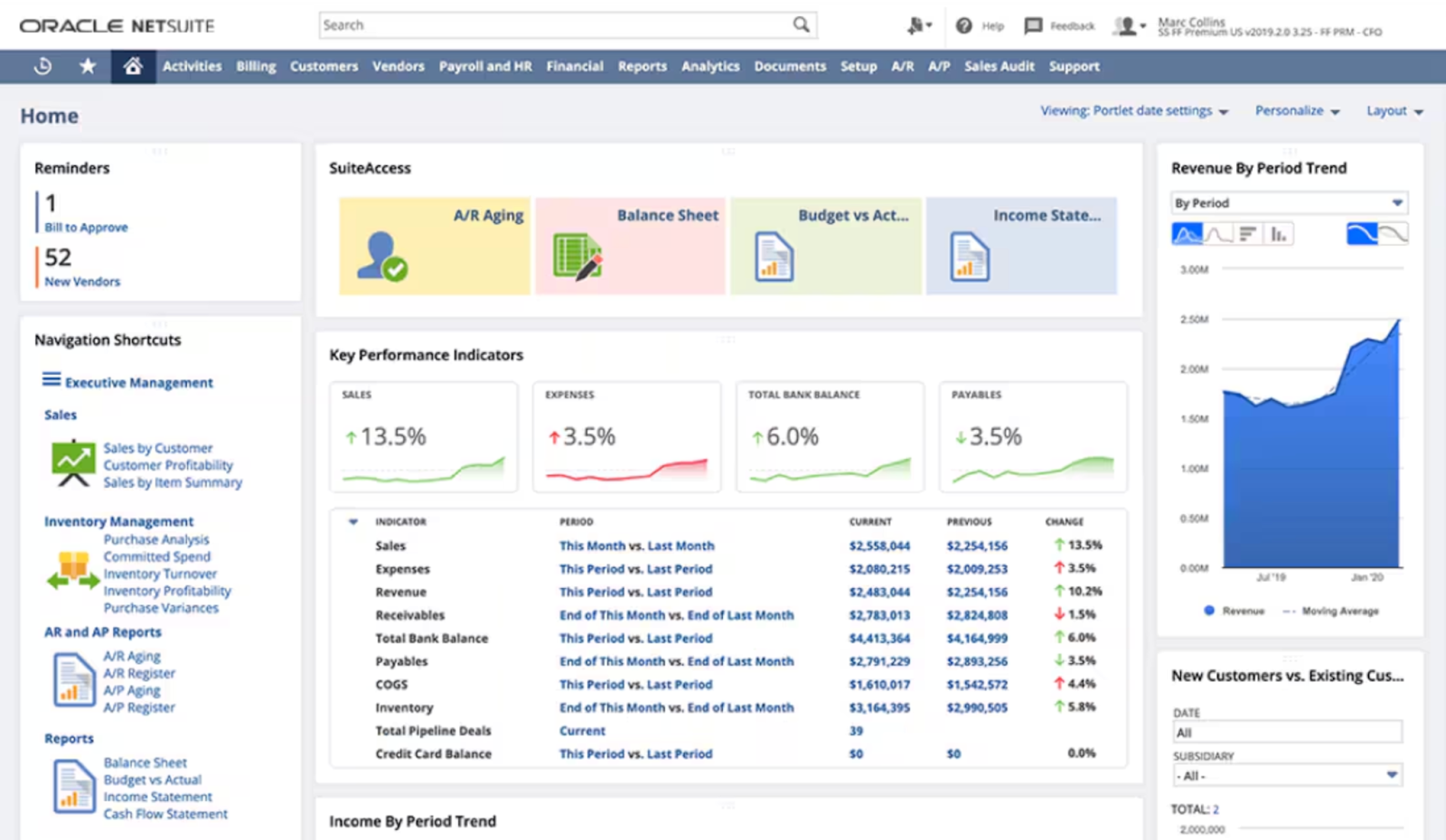 NetSuite d’Oracle figure parmi les solutions de planification des ressources de l’entreprise (ERP) les plus complètes disponibles sur le marché. NetSuite offre des outils et des fonctionnalités puissants pour répondre à un large éventail de besoins, notamment en comptabilité, approvisionnement et gestion de projet. Cependant, cette richesse de fonctionnalités peut également dépasser les besoins d’une petite entreprise.