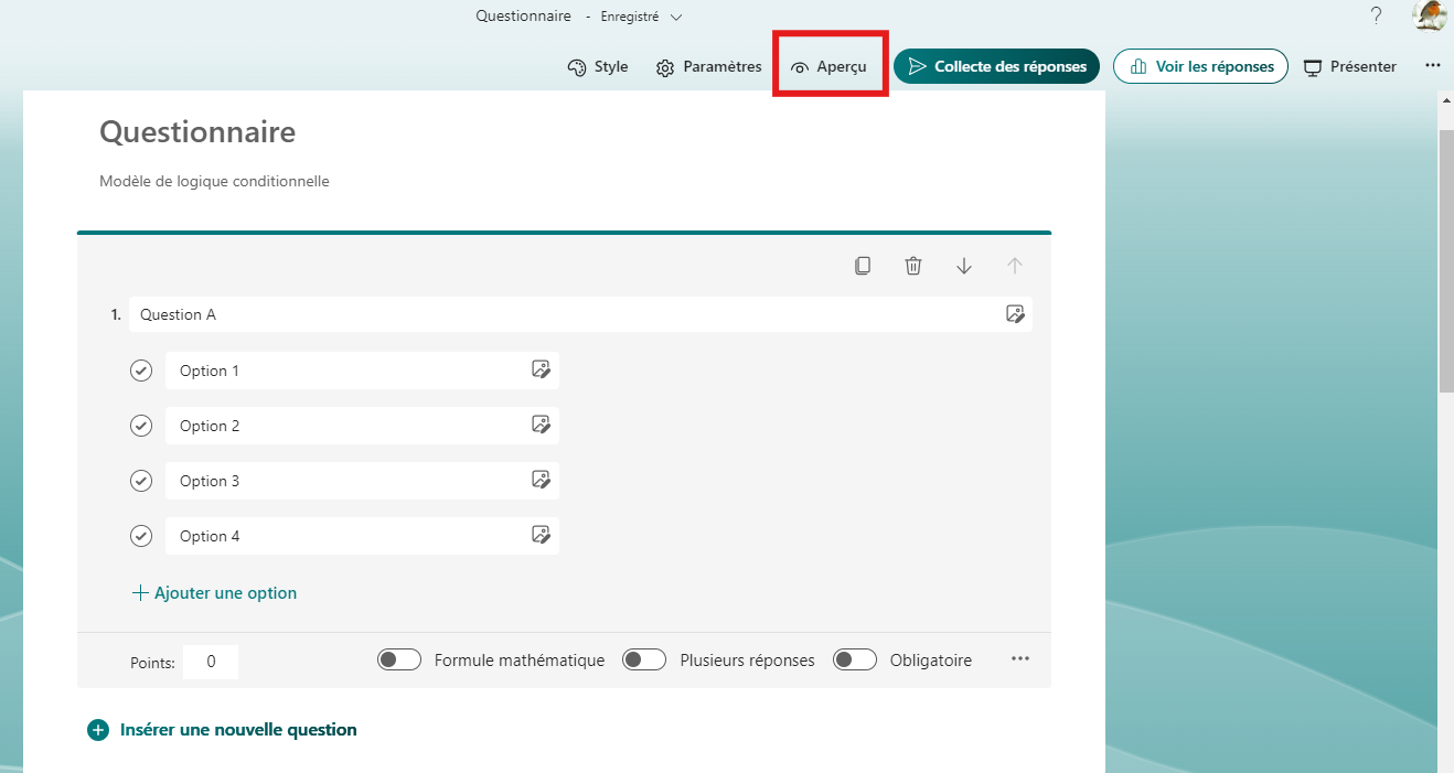 Ajouter une logique conditionnelle dans Microsoft Forms