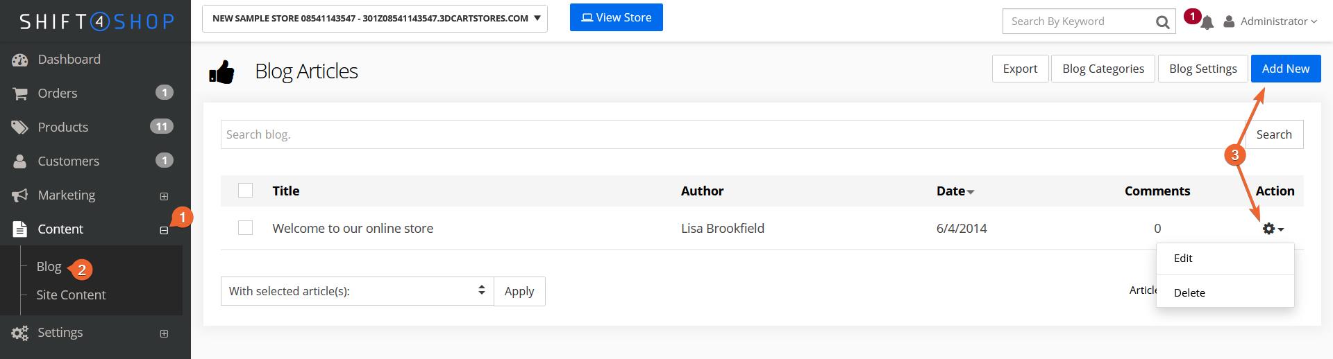 - Accédez à Contenu > Blog pour ouvrir la page Articles du blog.