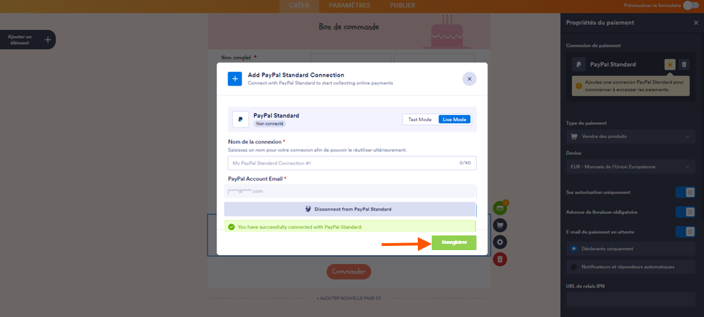 - Une fois votre compte PayPal Standard connecté, cliquez sur le bouton Enregistrer en bas de la fenêtre.