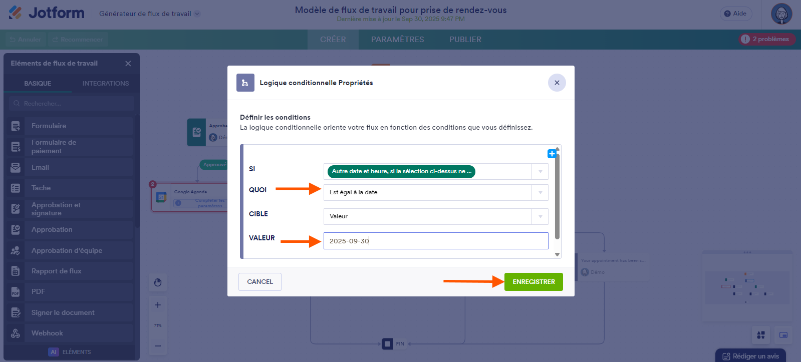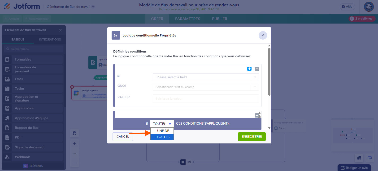 Les modifications apportées à l’élément Logique conditionnelle ne s’enregistrent pas automatiquement. Vous devez cliquer sur le bouton « Enregistrer » à chaque fois pour appliquer vos modifications.