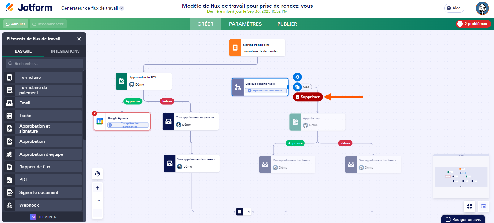Pour supprimer l’élément Logique conditionnelle, cliquez sur l’icône de corbeille à sa droite.