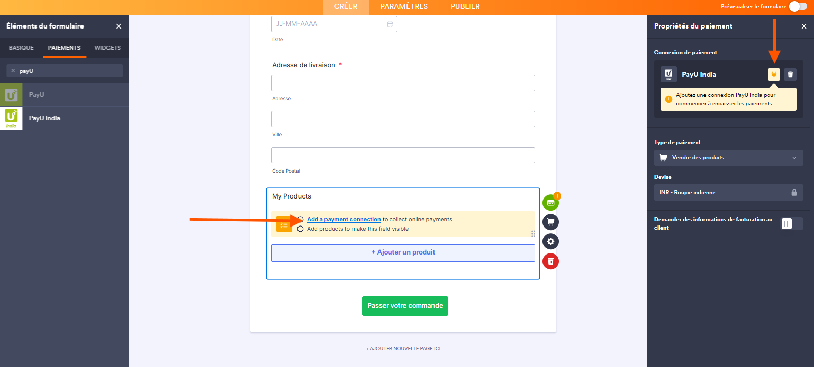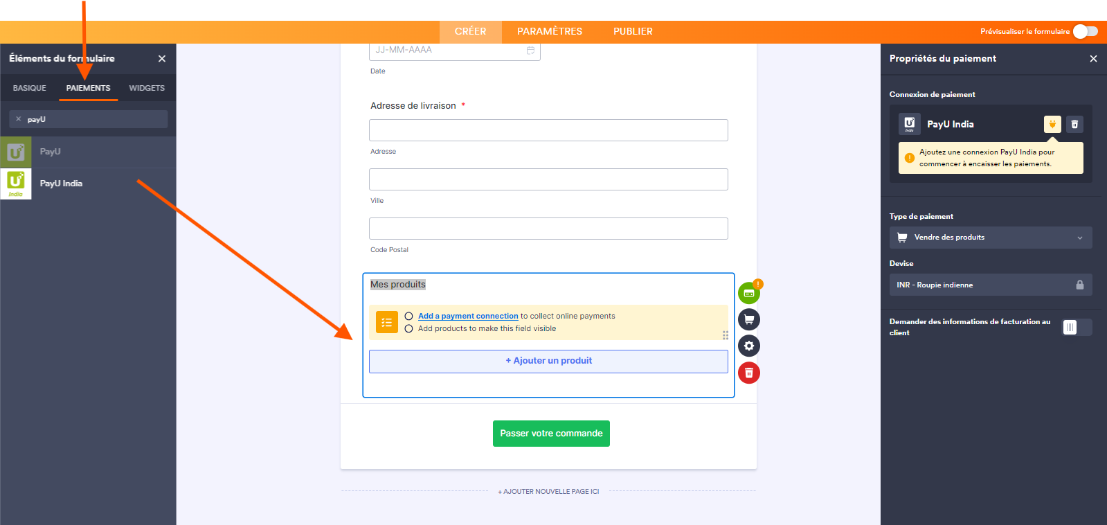 Pour ajouter et configurer PayU India (Money) dans votre formulaire, suivez ces étapes simples :
