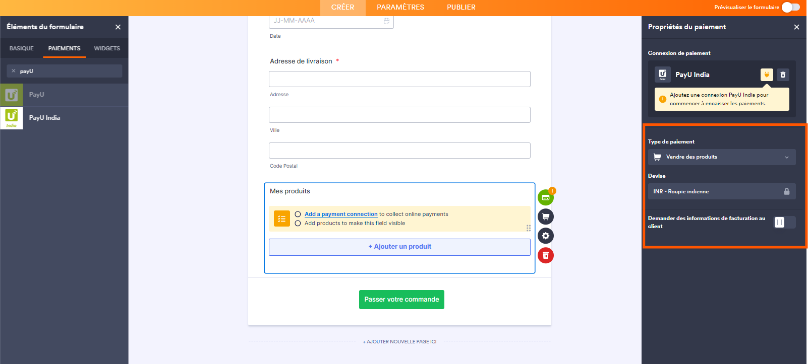 Ajouter et configurer PayU India (Money) dans le formulaire
