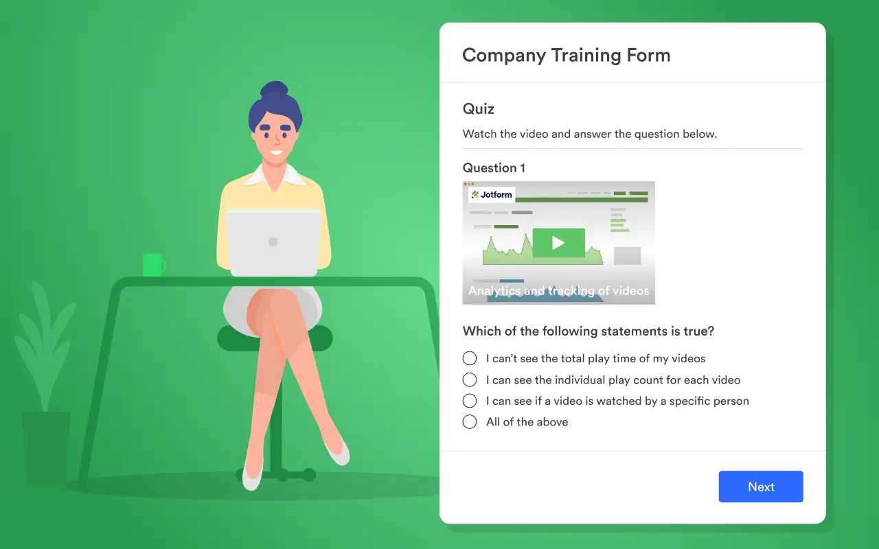 Boostez votre formulaire Jotform en affichant vos vidéos préférées. Les widgets vidéo de Jotform sont simples à ajouter et utilisent des services connus tels que Vimeo, TED et YouTube - parfaits pour les travaux scolaires, les enquêtes et sondages auprès des clients et des employés, et juste pour le plaisir !