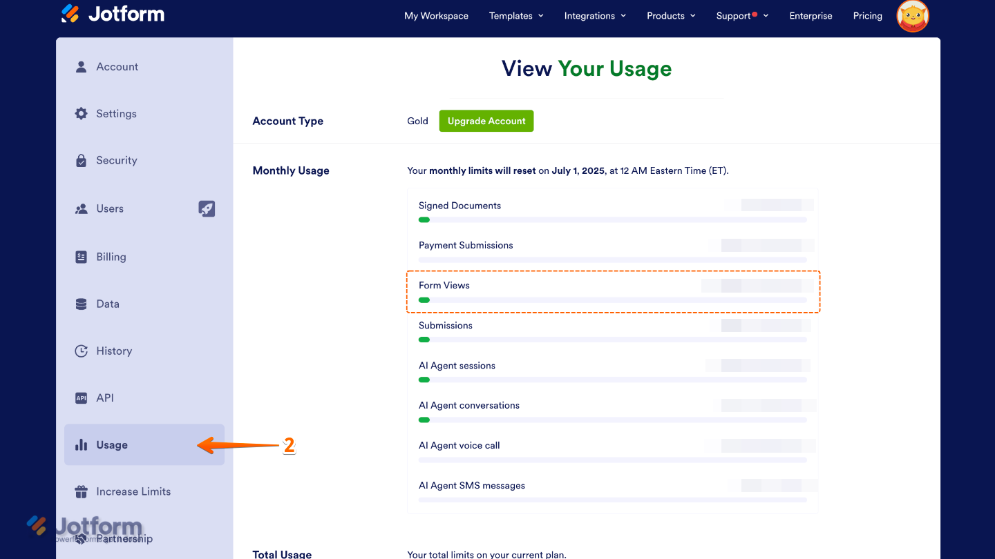 You can also view your account’s Form View Usage and Limit from your Account Usage page. You’ll just need to do this: