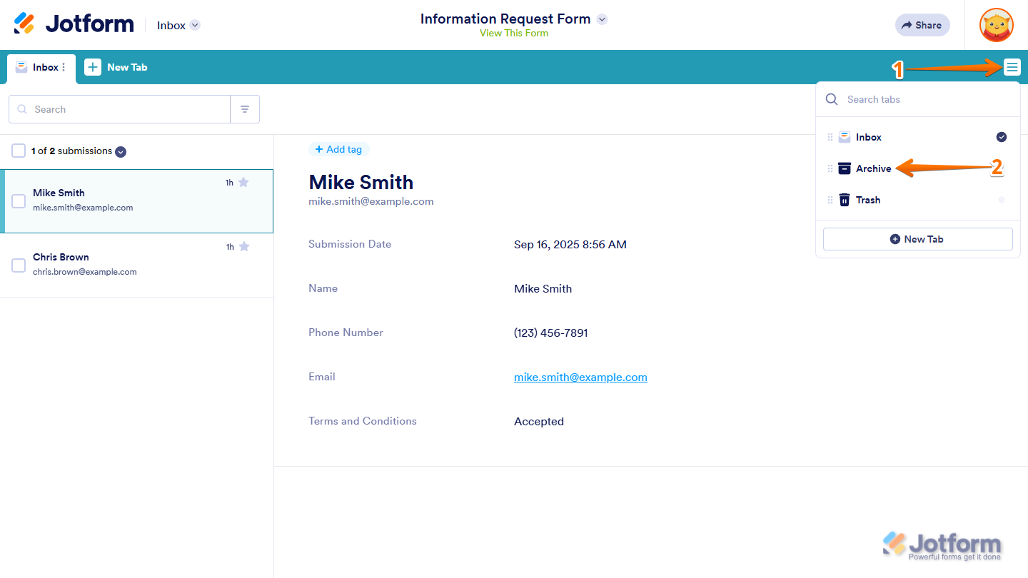 With Jotform Inbox, managing your form submissions has never been easier. In addition to organizing and viewing them, Jotform Inbox allows you to Archive and Unarchive them with ease. When a submission is archived, it’s hidden from your main Inbox view but remains fully accessible if you need it later.