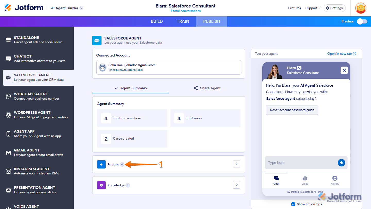 - While you’re still on the Salesforce Agent page, click on Actions.
