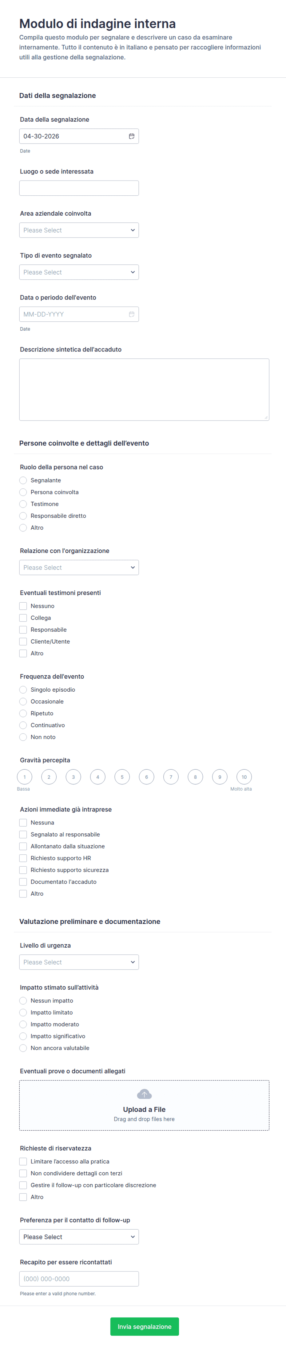 Un Questionario online per colloquio è un modello di modulo che permette alle aziende di condurre interviste strutturate in modo efficiente e organizzato. Ottimo per selezionare candidati e valutare competenze. Provare ora!