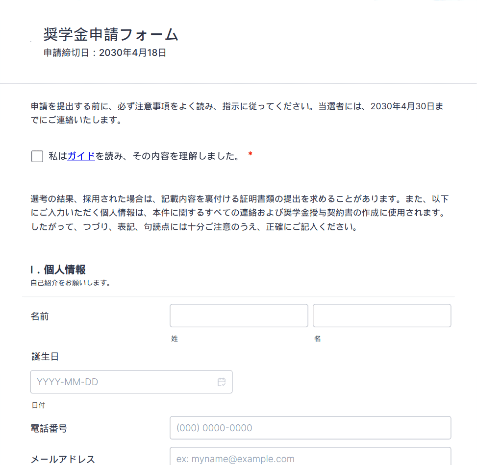 奨学金申請フォーム
