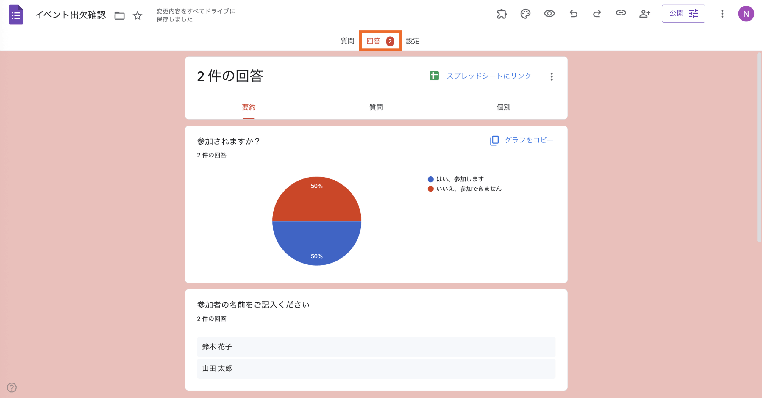 - フォーム内で、中央にある回答タブをクリックします。ここで送信されたすべての回答を見ることができます。