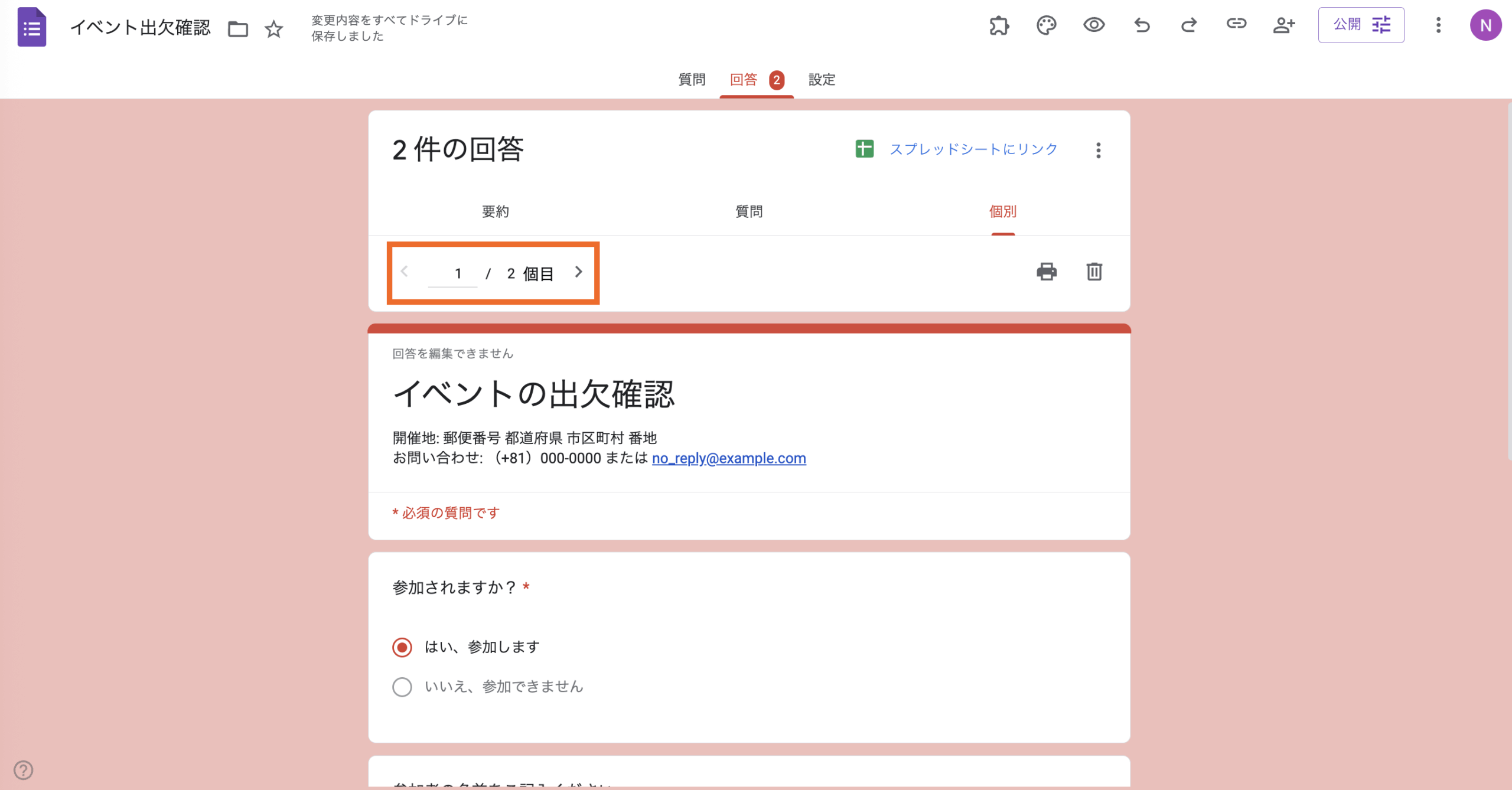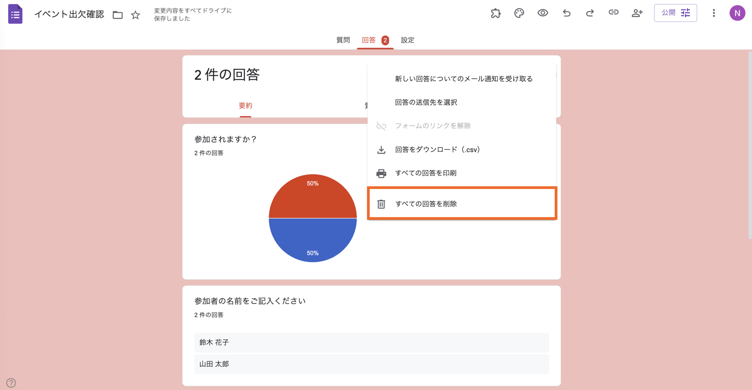 フォーム内のすべての回答を一度に削除することも可能で、個別に削除するよりずっと早く処理できます。