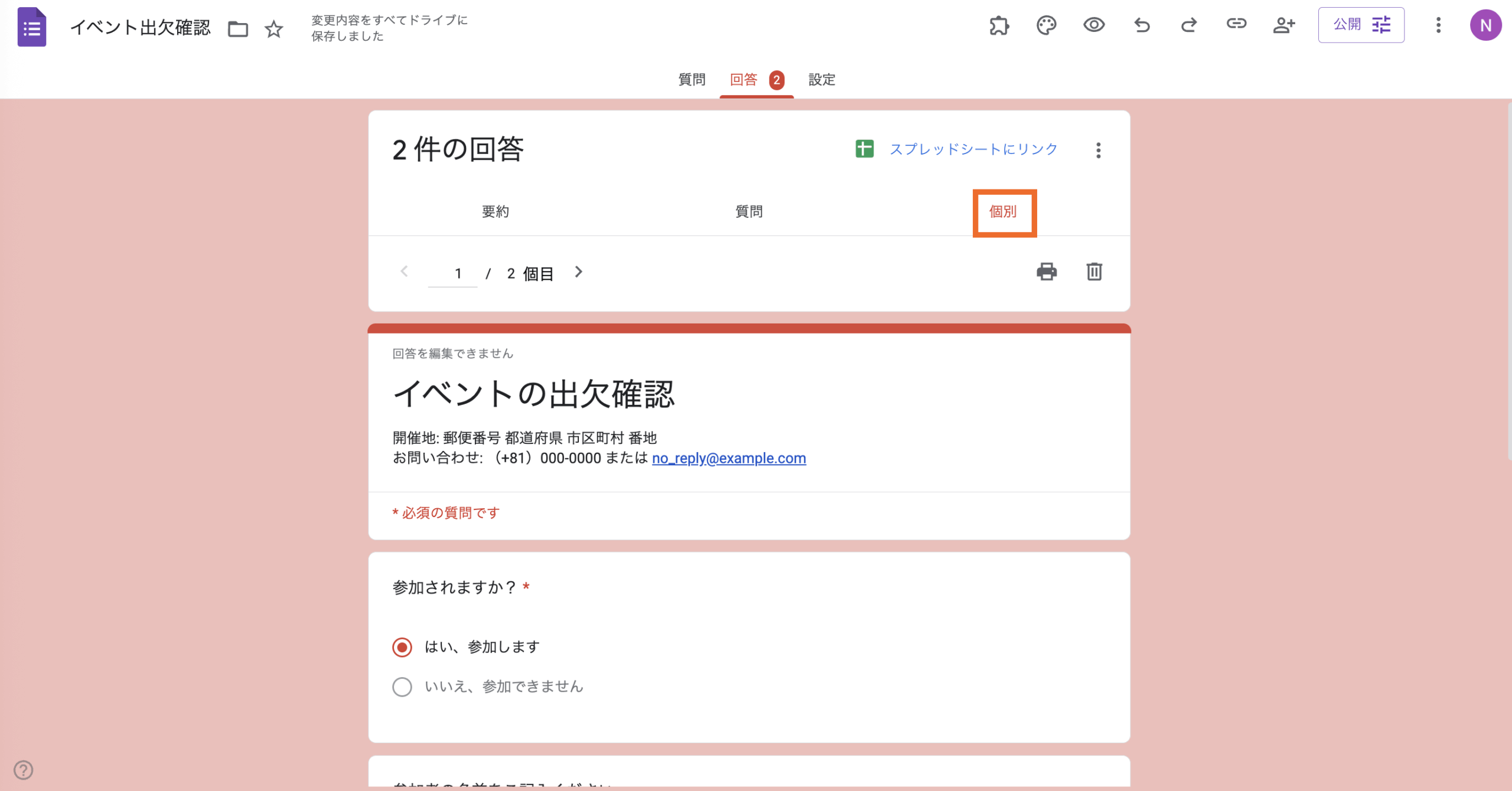 - 右側の個別タブをクリックします。これにより、個々の回答を見ることができます。