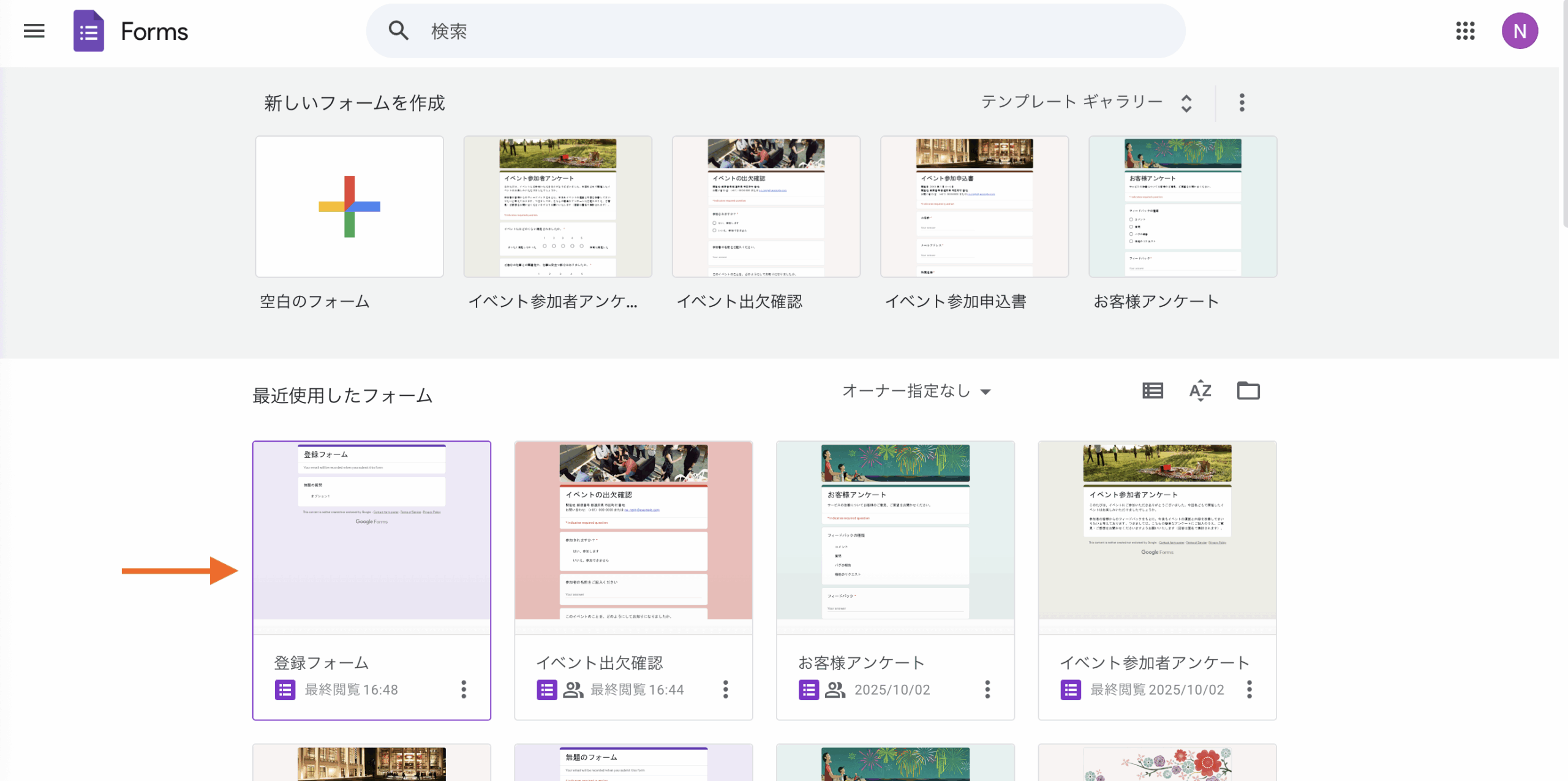 - Googleフォームを開き、更新したい回答があるフォームをクリックします。
