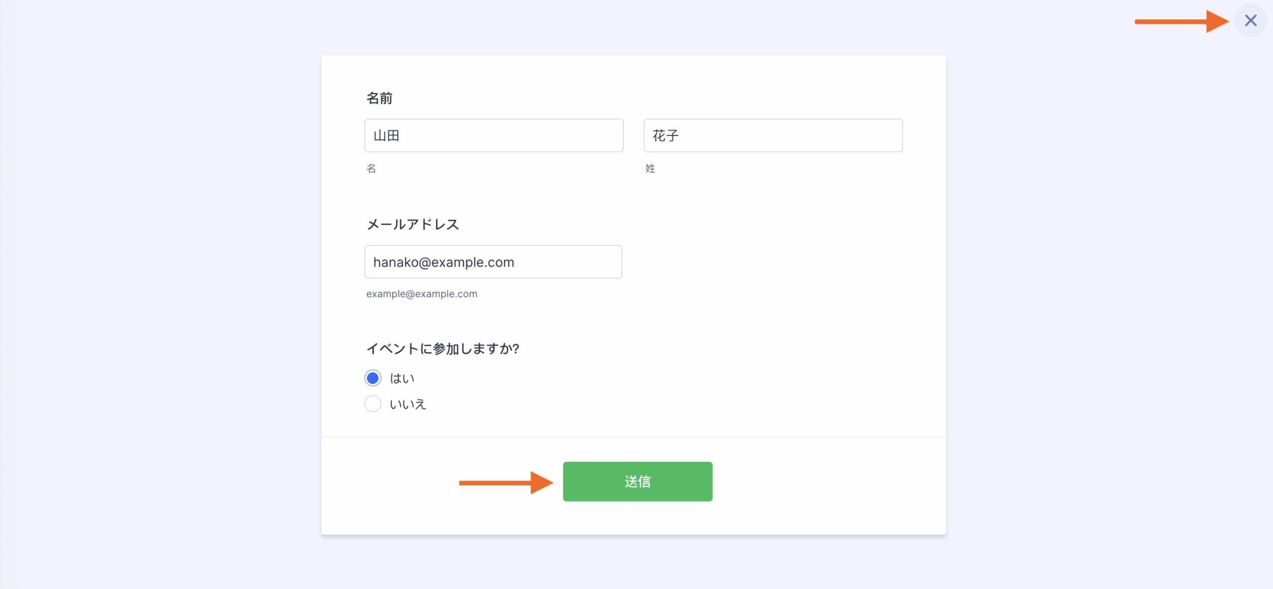 - フォームの回答を更新し、下部の送信ボタンをクリックしてフォームを再送信します。再送信せずにフォームを終了したい場合は、右上隅の円形のXボタンをクリックして保存せずに終了します。