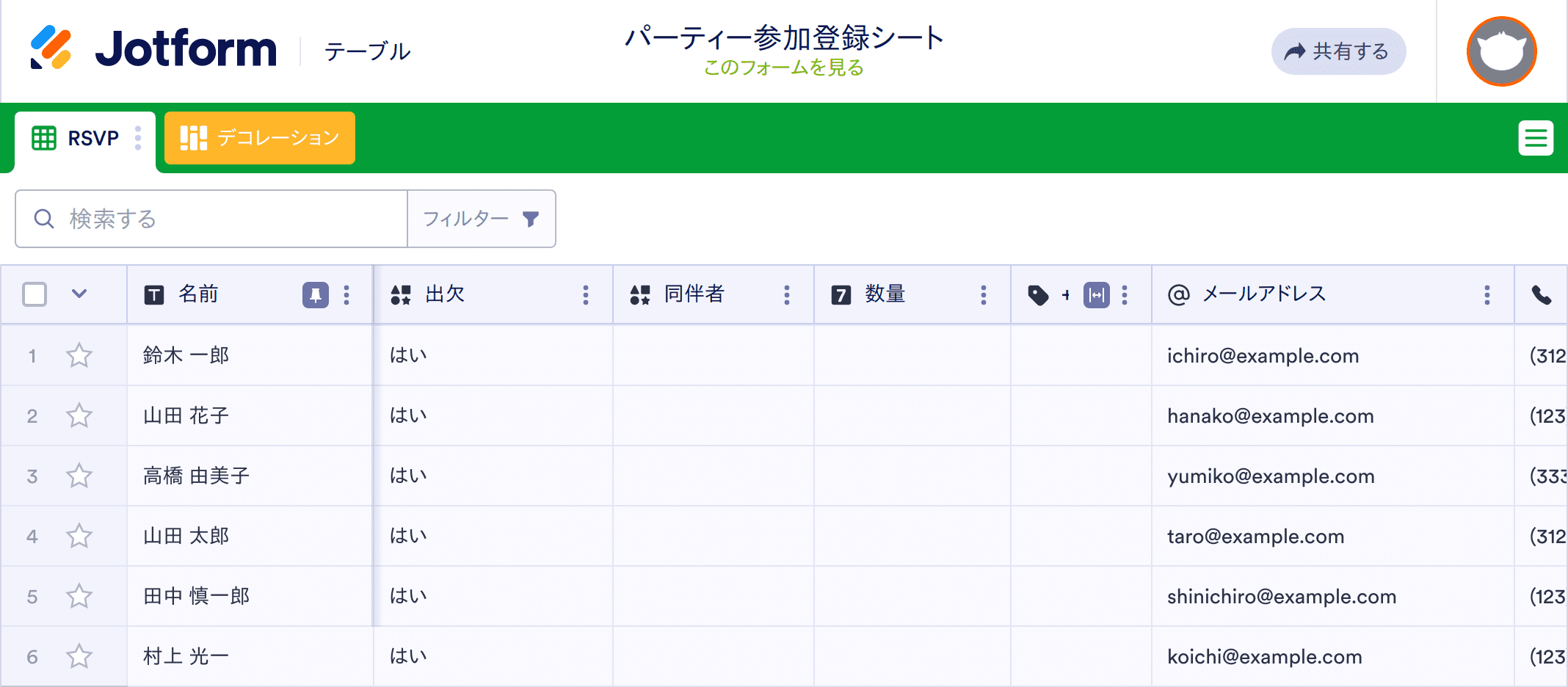 無料のオンライン「パーティー参加登録シート」で、イベント準備をスムーズに!
