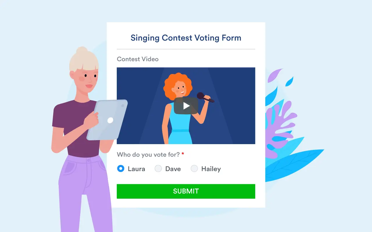Wil je rijke content aan je formulieren toevoegen? Dan kun je eenvoudig een Jotform-widget voor audiovisuele media kiezen. Met onze widgets voor rijke content kun je eenvoudig audio, video en afbeeldingen aan je online formulier toevoegen. Het grootste voordeel is dat je al onze widgets gratis kunt gebruiken.