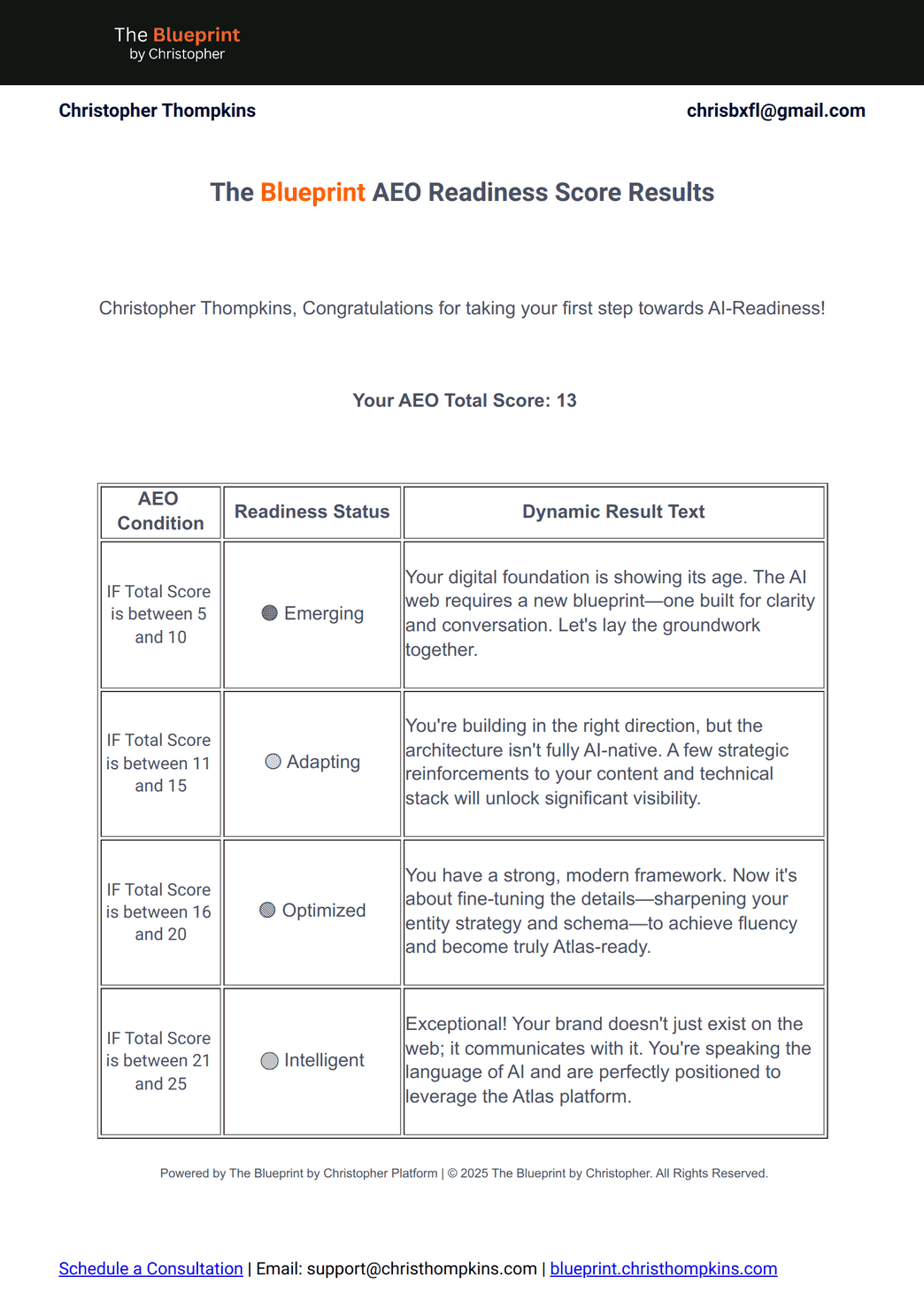 Blueprint AEO Readiness Score Template