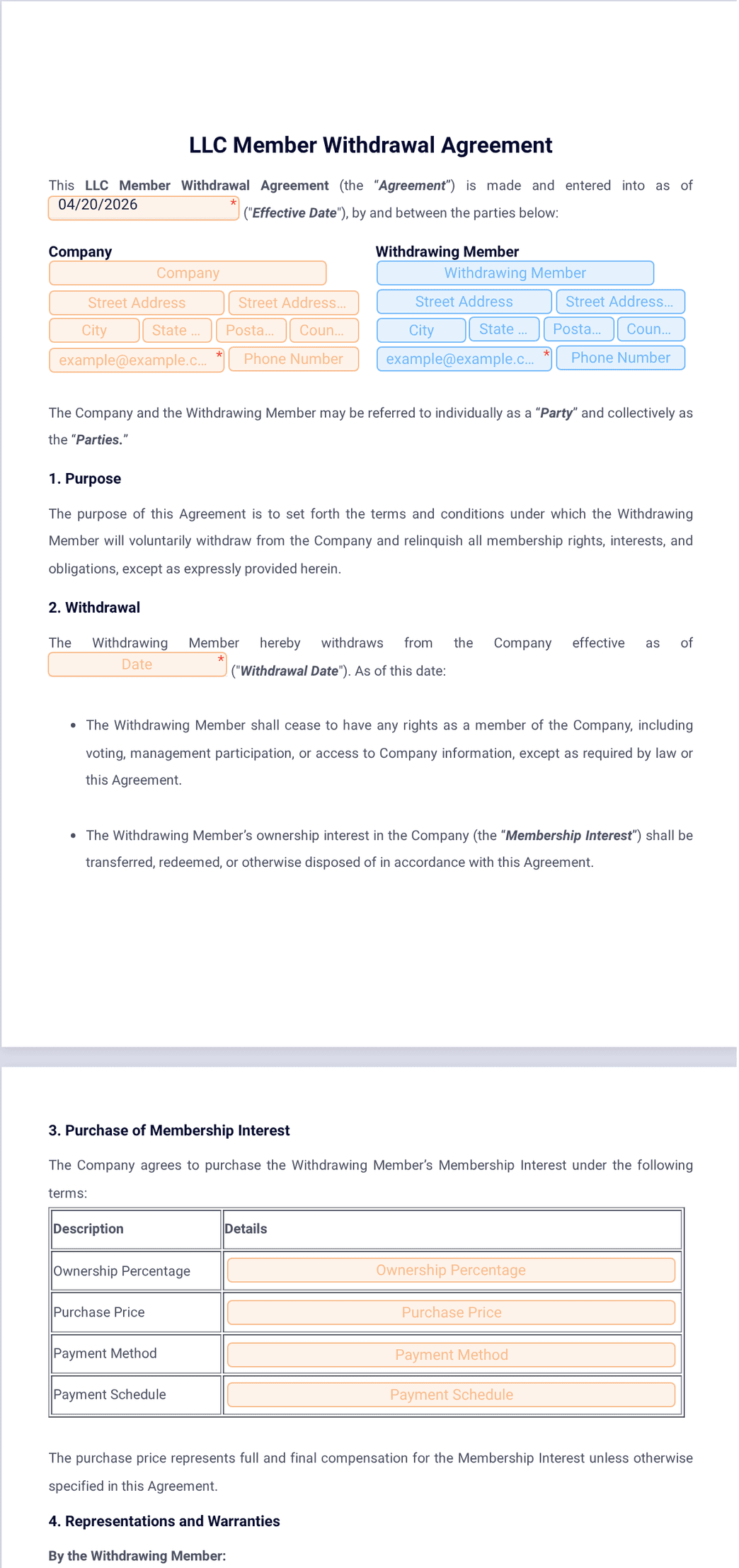 5) What are the key components that should be included in an LLC member withdrawal agreement template?