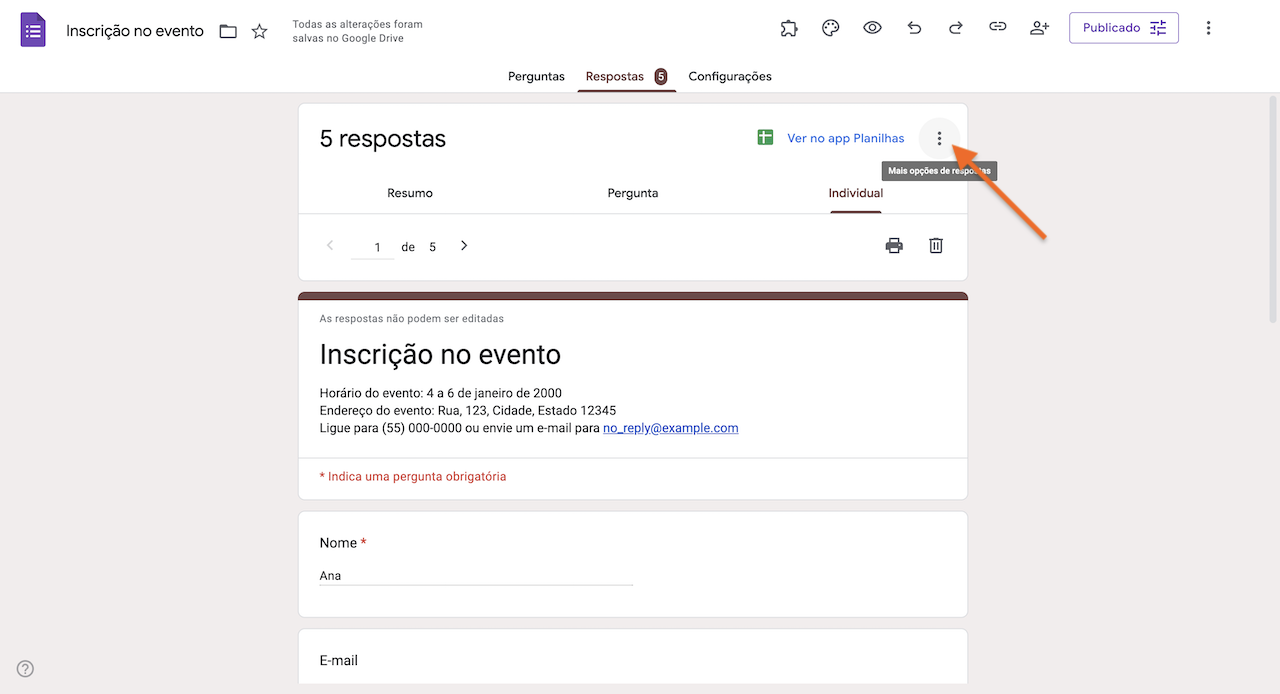 - Quando as respostas começarem a chegar, clique em Respostas.