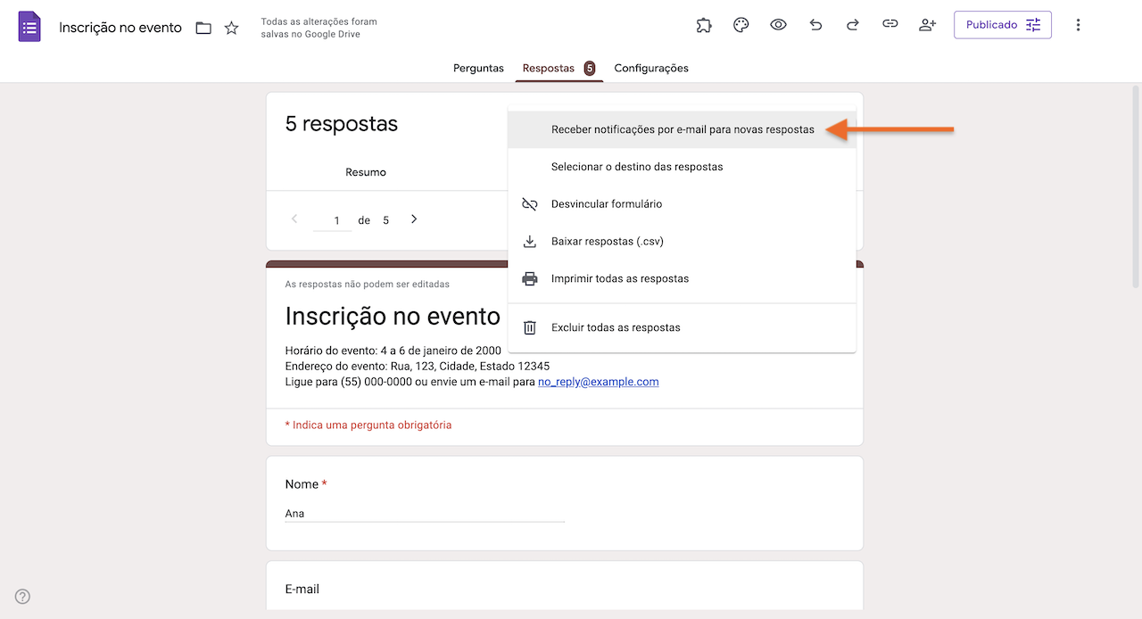 Felizmente, configurar notificações por e-mail para seus Formulários Google é fácil. Veja abaixo como fazê-lo: