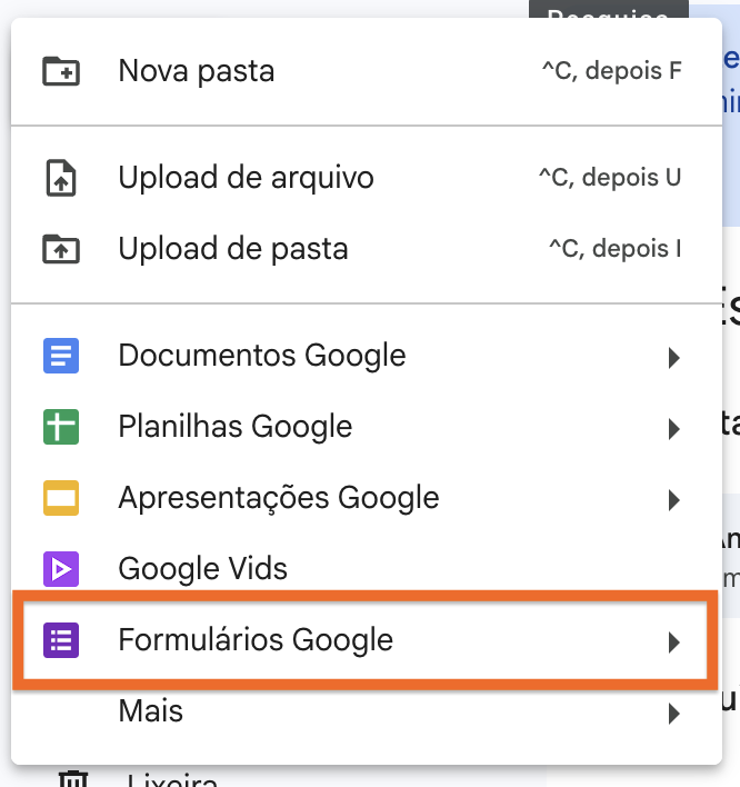 - Criando um novo escape room. Comece criando um novo formulário. Acesse a página principal do Google Drive e clique em Novo. No menu suspenso, selecione Formulários Google.