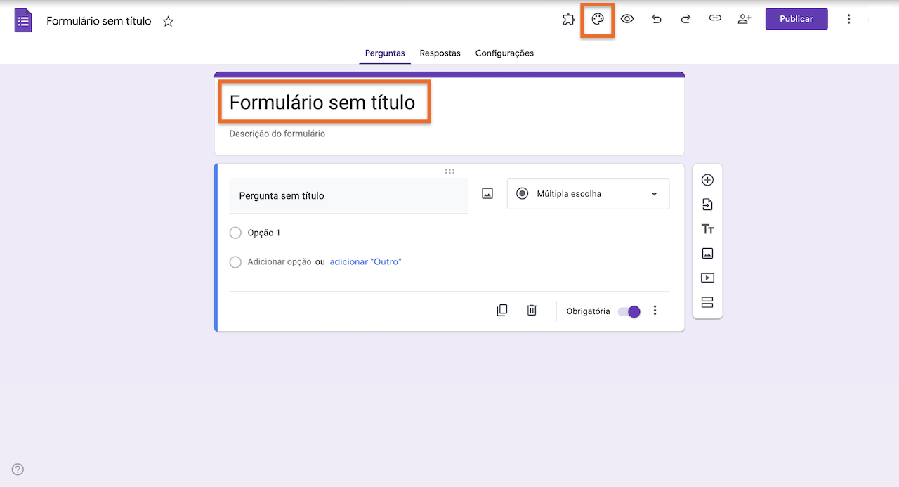 - Dê um nome, descrição e defina um tema para o seu formulário