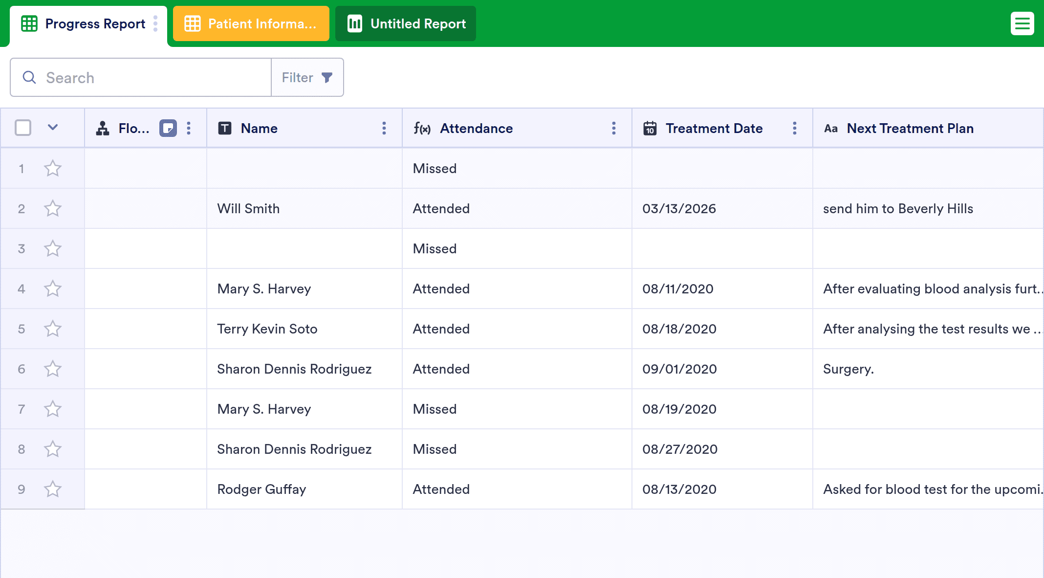 In 2025, this Patient Tracker Template is trusted by doctors and healthcare professionals to monitor patient status as they receive treatment. Whether you’re a primary care physician, physical therapist, psychiatrist, medical specialist, or part of a care team, our Patient Tracker will help you consistently monitor your patients’ health. Quickly enter patient information and appointment details — like name, treatment date, attendance, and progress notes — to reduce errors and ensure smooth continuity of care. You’ll be able to access and update your Patient Tracker Template securely from any desktop or mobile device in 2025, and you may also share this information with patients and other medical staff in just one click.