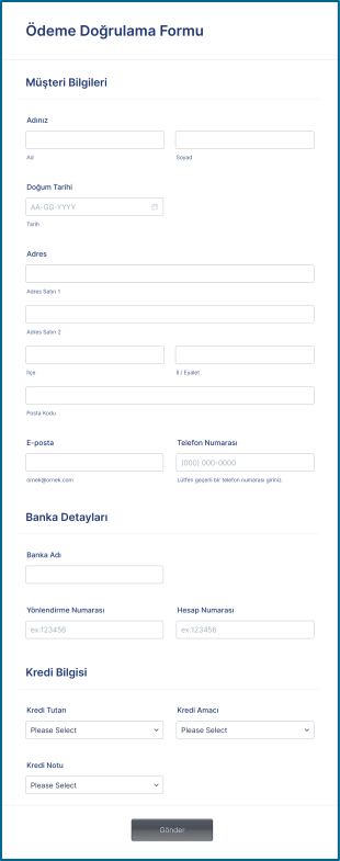 Ödeme Doğrulama AI Asistanı, kullanıcıların ödeme bilgilerini doğrulamak için etkileşimli bir deneyim sunan bir yapay zeka asistanıdır. Bu asistan, kullanıcıların gerekli bilgileri sağlamasını kolaylaştırarak, ödeme süreçlerini daha verimli hale getirir. Müşterilerin ödeme bilgilerini girmesi sırasında sorular sorarak, doğru ve eksiksiz veri toplanmasına yardımcı olur.