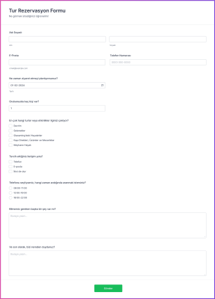 Bir Tur Rezervasyon AI Agent'ı, katılımcılardan tur rezervasyon bilgilerini toplamak için tasarlanmış etkileşimli bir asistandır. Bu AI Agent, kullanıcıların ihtiyaçlarını karşılamak için sorular sorarak ve yanıtlar vererek iletişim kurar. Katılımcılar, planladıkları ziyaret tarihleri, grup büyüklüğü ve ilgi alanları hakkında bilgi vererek, işletmelere daha iyi hizmet sunma imkanı tanır.