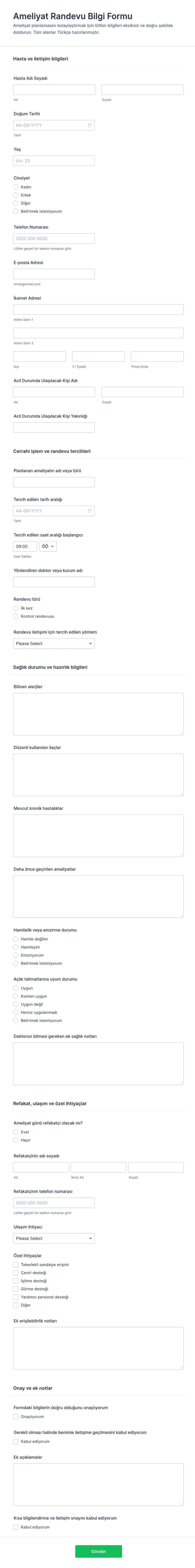 - Tıbbi Randevular: Sigorta bilgileri, ziyaret nedeni ve tıbbi geçmiş için alanlar gerektirebilir.