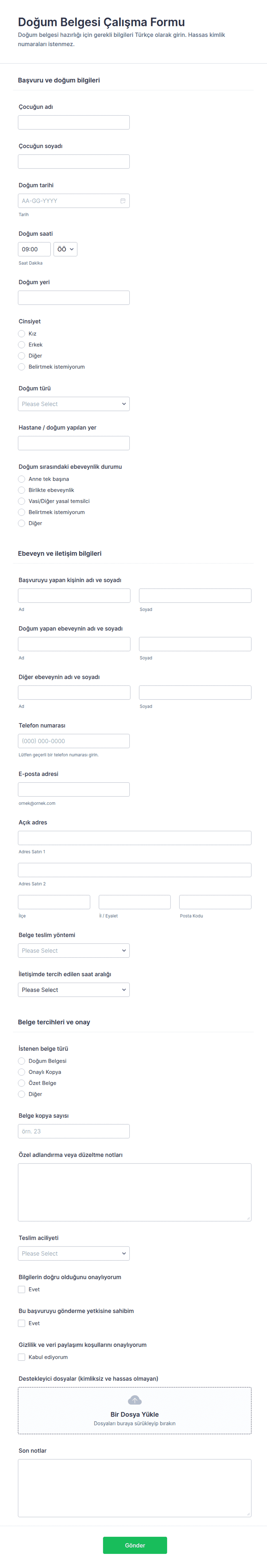 Formun amacına bağlı olarak, yaygın alanlar arasında kişisel bilgiler, iletişim bilgileri, tarihler, etkinlik veya olay açıklamaları, onay imzaları ve geribildirim bölümleri bulunur.