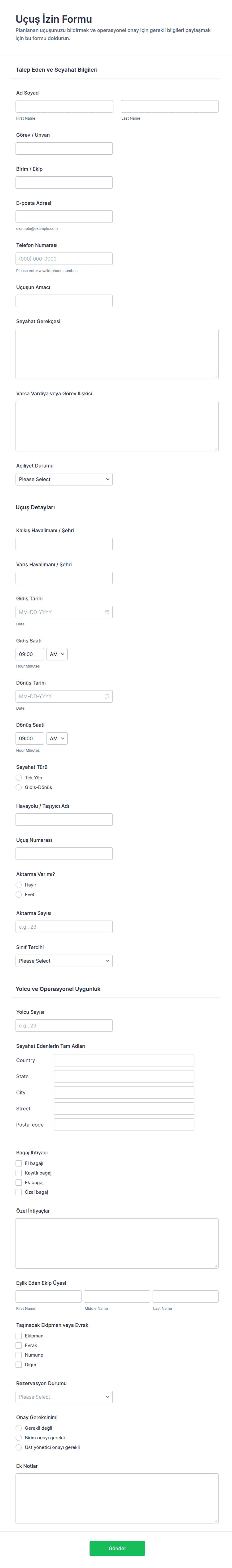 - Ödeme Yetkilendirme Formları: Ödeme detaylarını, yinelenen ödeme seçeneklerini ve güvenli ödeme ağ geçidi entegrasyonlarını içerir.
