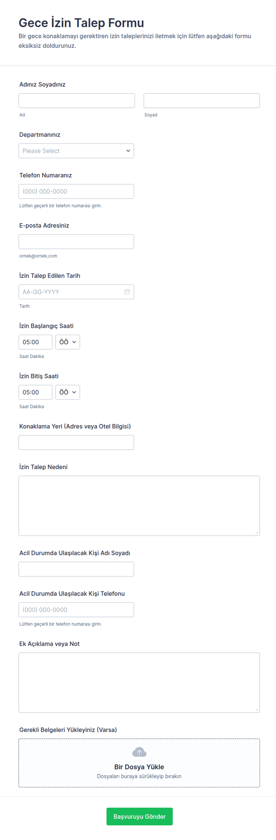 - Uzaktan Çalışma Talepleri: Ekipman ihtiyaçları veya uzaktan çalışma politikaları için onay kutuları içerebilir.